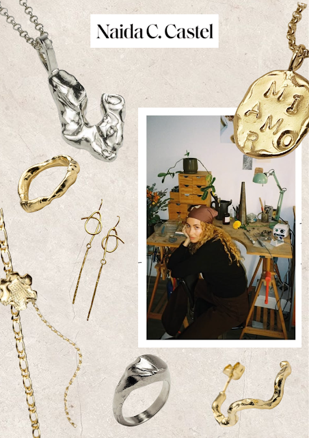 - Jewelry full of meaning. Naida C. Castel is born from a deep desire for self-expression, which emerges from the most unpredictable moments experienced by its creator. Eschewing convention, her jewelry is conceived as rebellious, untamed, contemporary objects that go hand in hand and with the rhythm of daily life. From her studio in Barcelona, Naida experiments with pieces that invoke and explore the spontaneity of form, always striving to showcase the honesty of materials and their transformation process. All her pieces are made or modeled by hand in her Barcelona studio. It all begins there, creating small productions, one-of-a-kind pieces, and special editions. Jewelry designed and crafted with love, using quality materials, such as gold and silver combined with crystals and raw precious stones.